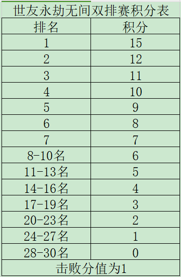 ★比赛内容:永劫无间天选之人模式,共三场单场赛,根据队伍中存活名次最高玩家的排名分+队伍总击杀分计算小队的总积分排名,决出每场比赛的冠军亚军队伍和幸运奖(双排赛幸运奖发积分排名第6.10.15名的队伍)