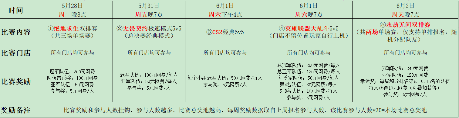 ★比赛奖励:参与奖网费5元,小组冠军队伍每人获得50元网费奖励。