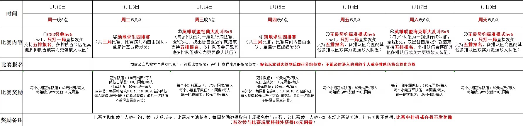 ★比赛报名:微信公众号“世友电竞”,选择比赛报名进行注册比赛软件完成报名,赛前1-2小时到店签到,如有疑问咨询工作人员。