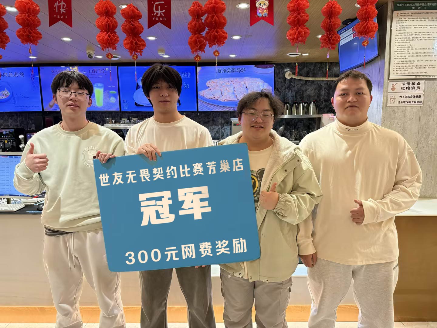 1月26日至2月8日 14场世友周赛 在世友电竞各门店落下帷幕 来自各门店的玩家同台竞技 共同角逐冠军宝座 CS2,无畏契约,绝地求生 英雄联盟顺利落幕。 恭喜参与世友赛事的获奖玩家 让我们一起来看看他们赛场上的英姿 春节期间比赛安排调整通知: